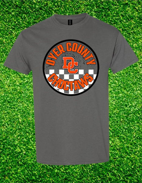 Rep your Choctaw pride in this bold checkered tee! Features the DC logo with orange and black details on a comfy unisex shirt.