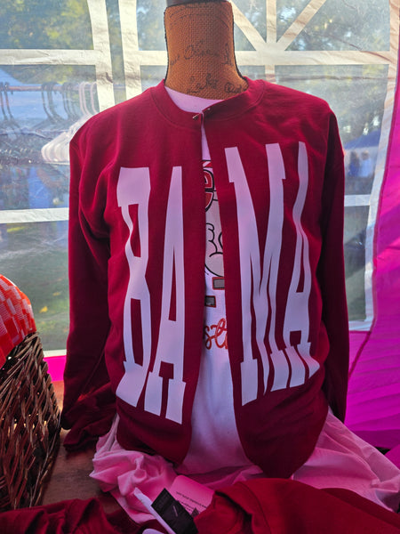 Cheer on the Crimson Tide in style with this bold BAMA sweatshirt! ❤️🐘 Featuring oversized block lettering across the front in crisp white, this cozy crimson sweatshirt is the ultimate game day essential. Perfect for football Saturdays, tailgates, or everyday wear, it’s soft, comfy, and full of team pride. Pair it with jeans or leggings and show everyone you roll with the Tide in true Alabama fashion!