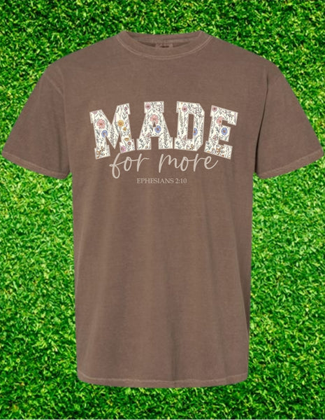 This floral-accented tee features Ephesians 2:10 as a bold reminder that you were created with purpose. Soft, comfy, and full of truth—available in sizes Small–4X.